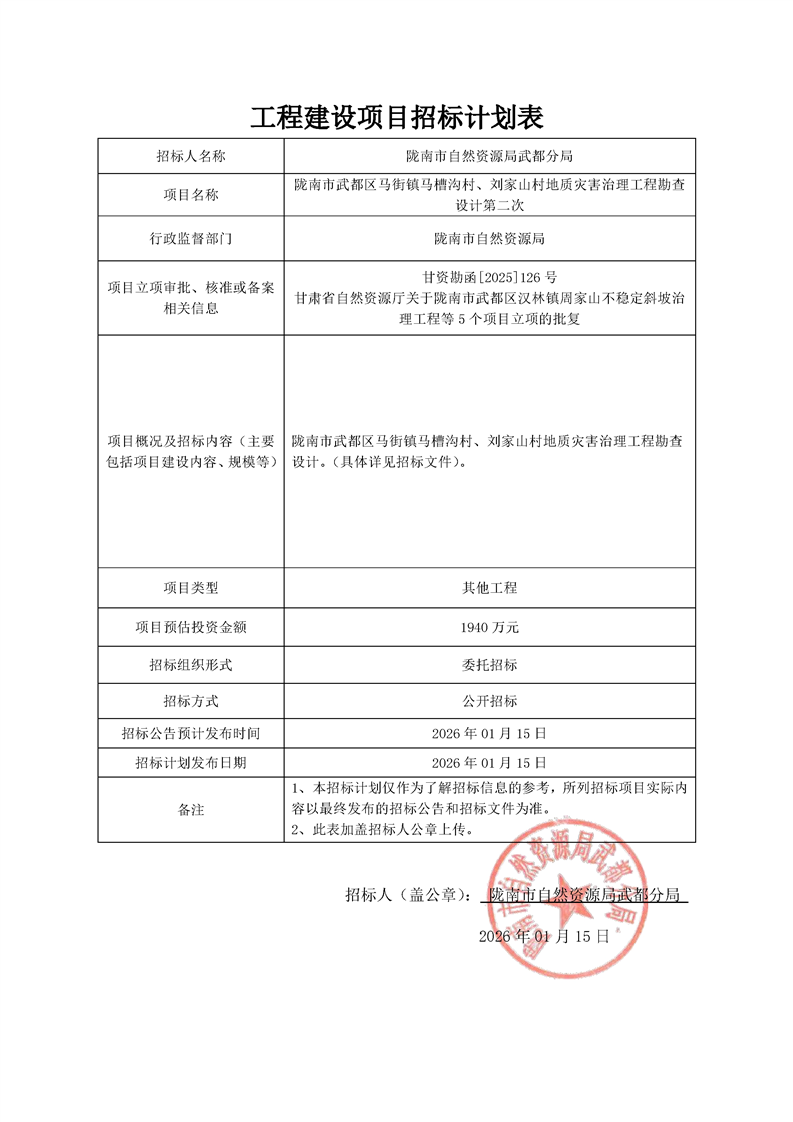 隴南市武都區(qū)馬街鎮(zhèn)馬槽溝村、劉家山村地質(zhì)災(zāi)害治理工程項(xiàng)目勘查設(shè)計(jì)第二次