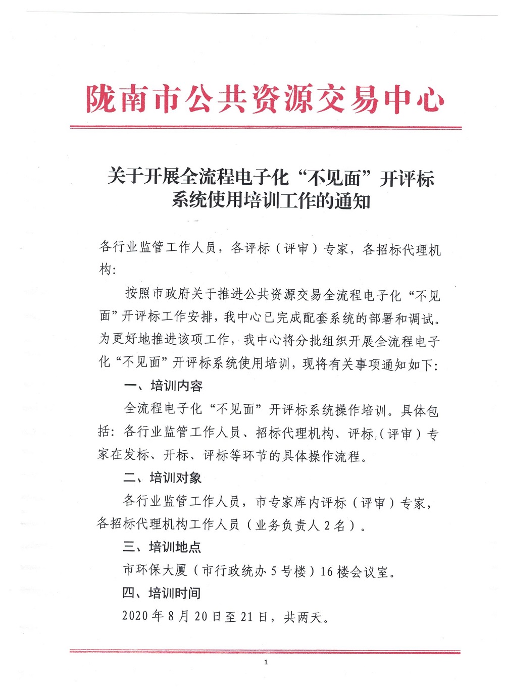 關(guān)于開展全流程電子化“不見面”開評標(biāo)系統(tǒng)使用培訓(xùn)工作的通知