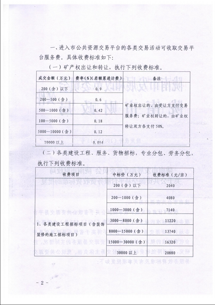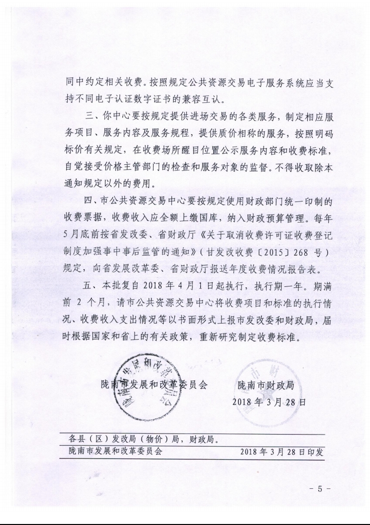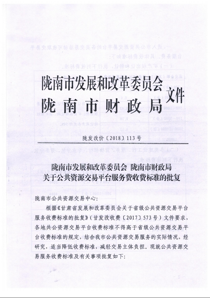 隴南市發(fā)展和改革委員會 隴南市財政局關(guān)于公共資源交易平臺服務(wù)費收費標準的批復(fù)